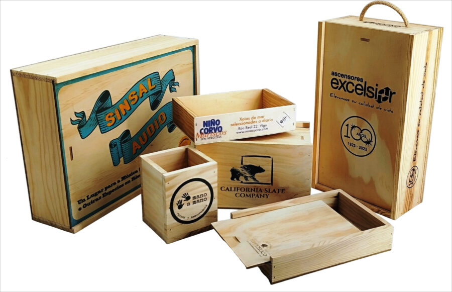 - Para aquellos que buscan un toque de autenticidad y robustez, ofrecemos cajas de madera hechas a medida.